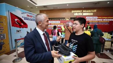Gaziantep’te öğrencilere karne hediyesi olarak spor ayakkabı hediye edildi