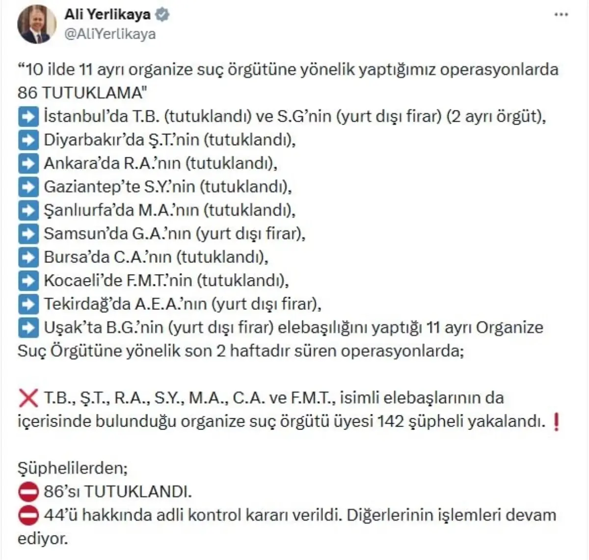 10 ilde 11 organize suç örgütüne yönelik operasyonlar detaylarıyla. Güvenlik güçlerinin başarılı çalışmasıyla suç şebekeleri çökertildi.