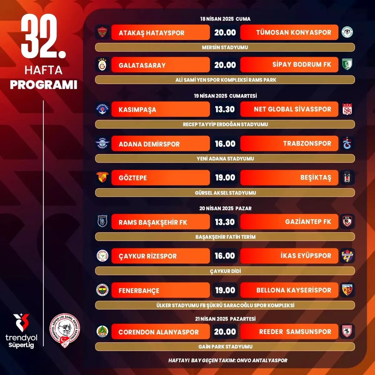 - 19.00 Atakaş Hatayspor – Başakşehir
