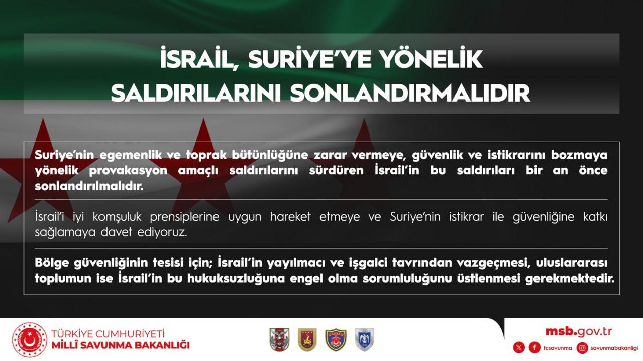 SON DAKİKA: Milli Savunma Bakanlığı (MSB) tarafından haftalık basın bilgilendirme toplantısı yapıldı. Toplantıda gündemdeki son gelişmelere ve Bakanlık çalışmalarına dair gazetecilere bilgi verildi. Milli Savunma Bakanlığı kaynakları, Suriye’deki son durum ve İsrail’in Suriye’ye ait üsleri vurmasına yönelik sorular üzerine şu değerlendirmeleri yaptı:
