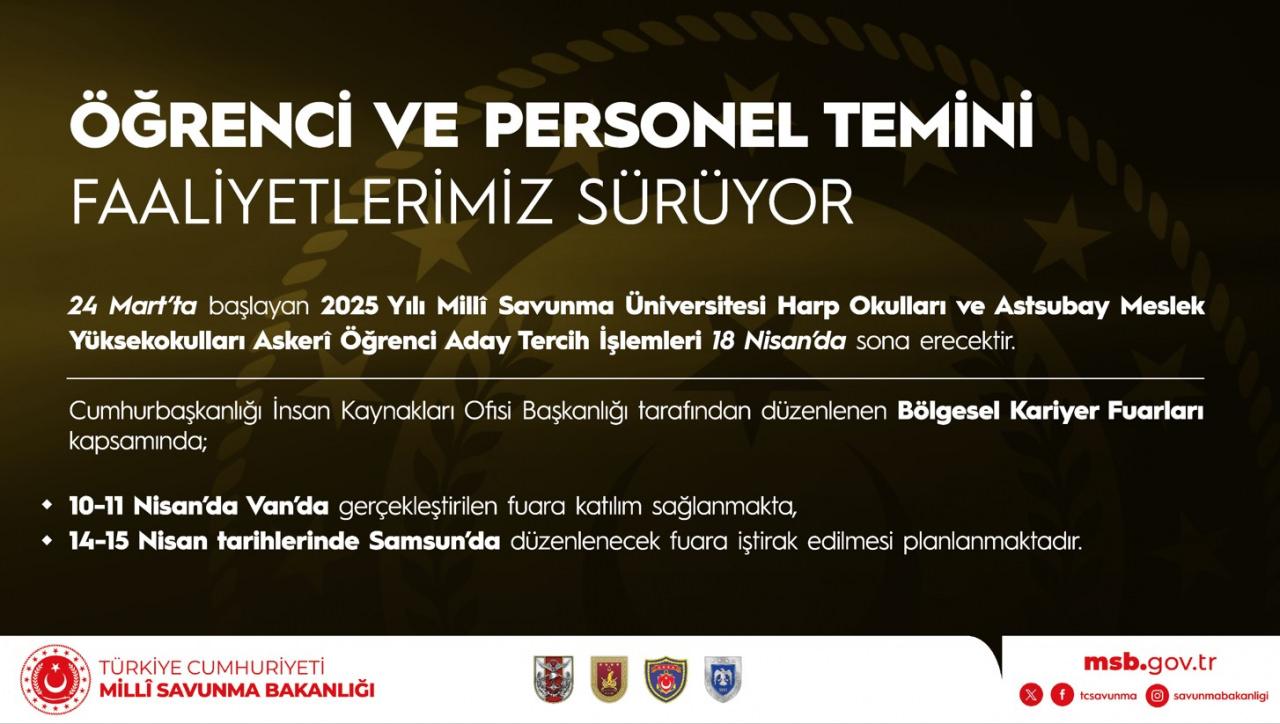 Personel ve askerî öğrenci alım/temin işlemleri, planlanan takvime uygun şekilde devam etmektedir.