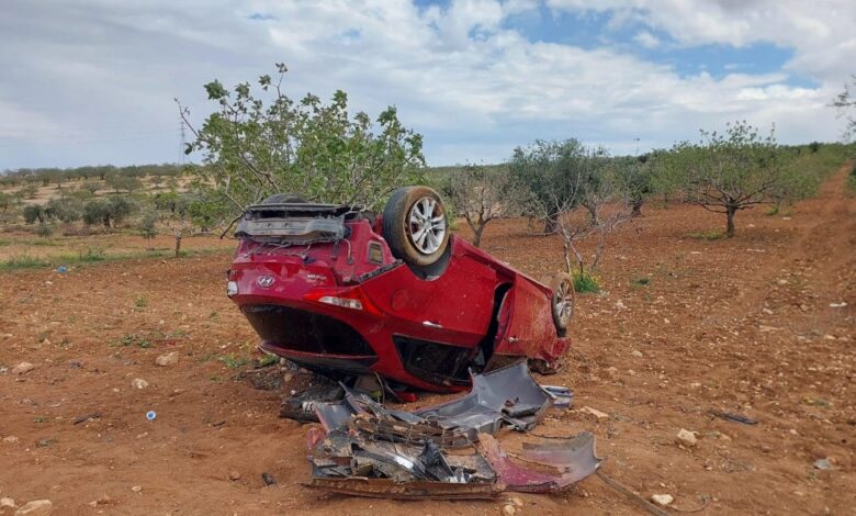Gaziantep’te lastiği patlayan otomobil, fıstık bahçesine uçtu