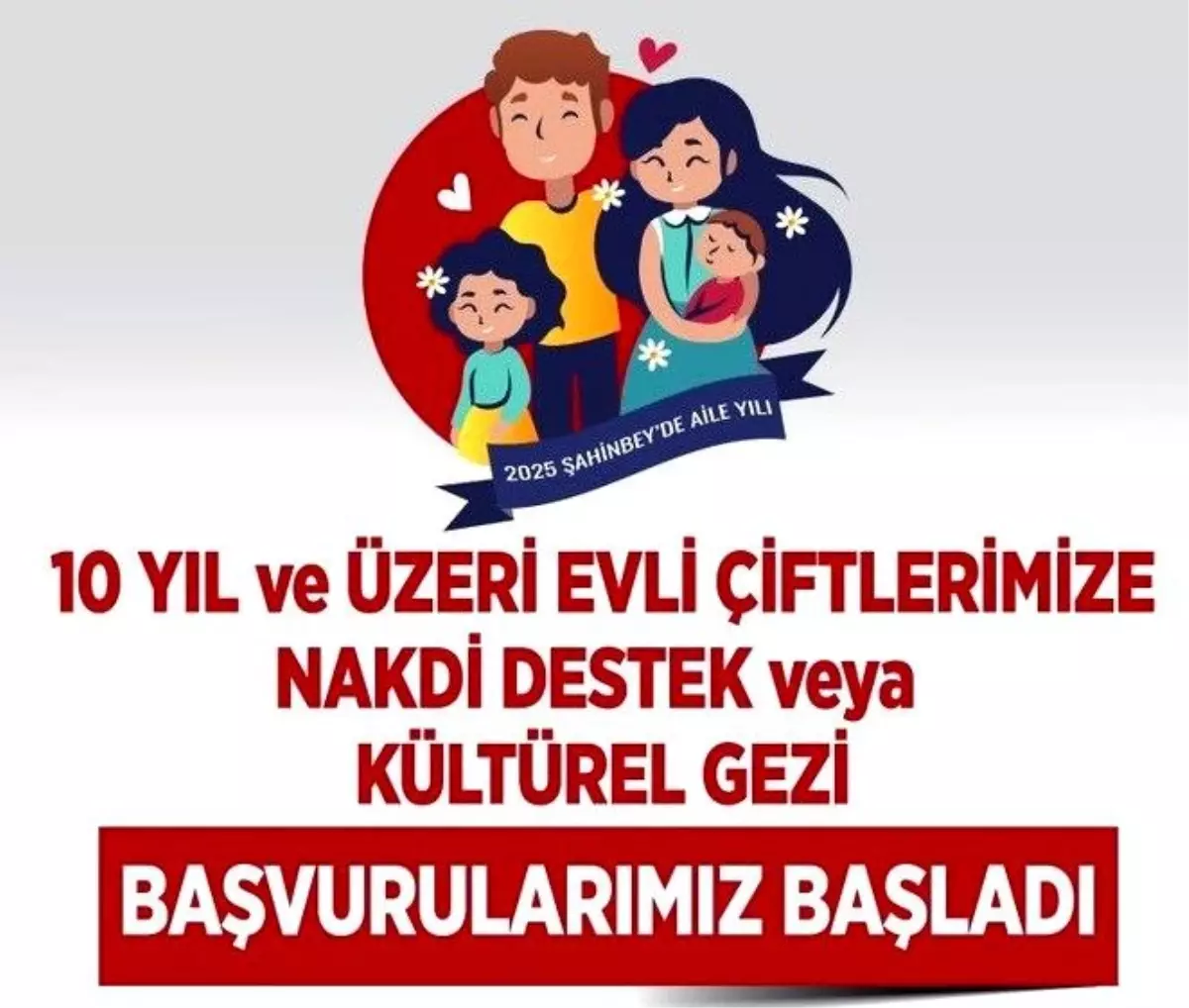 Şahinbey Belediye Başkanı Mehmet Tahmazoğlu, 10 yıl ve üzeri evli olan çiftlere nakdi destek ve kültürel geziler düzenleyeceği müjdesini verdi. Ayrıca, evlilikleri uzun süredir devam eden çiftler ile çocuk sahibi olan ailelere çeşitli destekler sağlanacak.