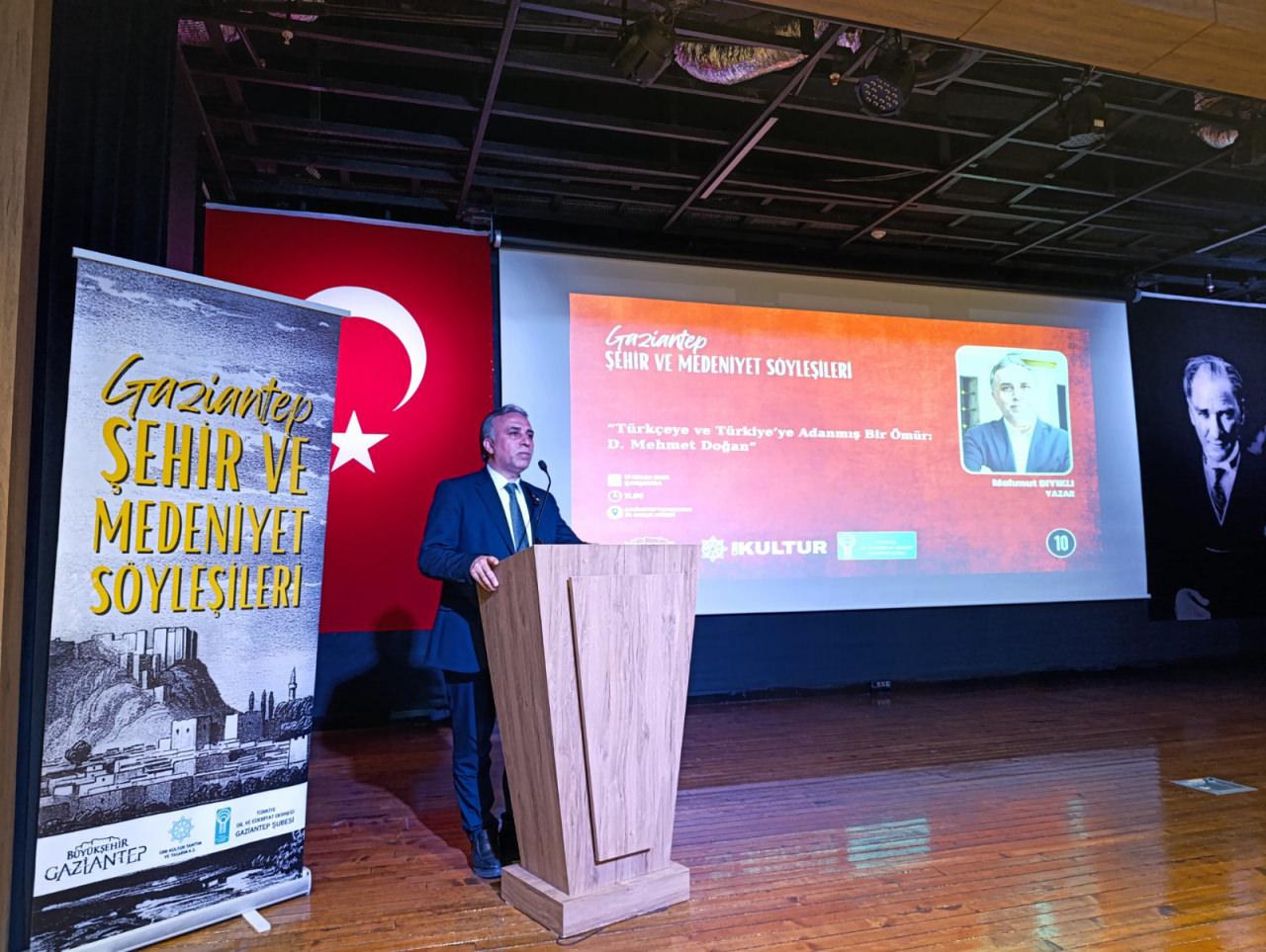 Gaziantep Büyükşehir Belediyesi’nin düzenlediği Gaziantep Şehir ve Medeniyet Söyleşileri kapsamında Mahmut Bıyıklı, “Türkçe Aşığı D. Mehmet Doğan ve Dil Davamız” konulu konferansını verdi.