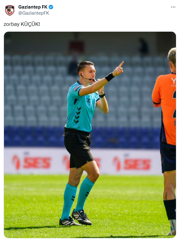 Fenerbahçe maçı öncesinde 3 kayıp verdiler! Gaziantep FK, hakem Zorbay Küçük’e ateş püskürdü Trendyol Süper Lig’in 32. haftasında RAMS Başakşehir ile deplasmanda karşılaşan ve 1-0 öne geçtiği maçı 2-1 kaybeden Gaziantep FK Fenerbahçe maçı öncesinde 3 puanın yanı sıra 3 önemli isminden de oldu. Bunun üzerine kırmızı-siyahlı ekip, müsabakanın hemen ardından karşılaşmanın hakemi Zorbay Küçük’e tepki gösterdiği paylaşımlarda bulundu.