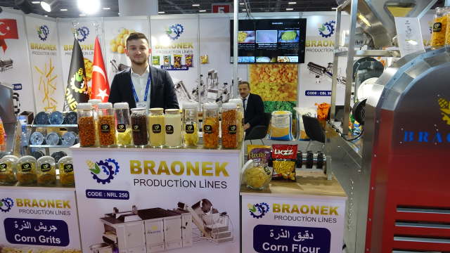 Braonek Makina Satış Müdürü Abdullah Sabag, Gaziantep’te üretim yaptıklarını ve cips, cornflakes ile mısır işleme makineleri ürettiklerini belirtti. Sabag, "Fuar güzel geçiyor. İstanbul’da yaşanan depremin etkisiyle biraz durgunluk yaşansa da genel olarak memnunuz" ifadelerini kullandı.