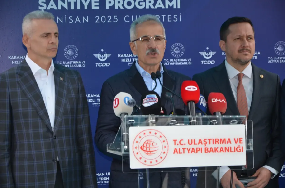 Karaman-Ulukışla hızlı tren projesinin 2027 yılı içinde işletmeye açmayı hedeflediklerini belirten Bakan Uraloğlu, “Altyapı ve üstyapı işlerimizde yüzde 92,5 fiziksel ilerleme sağlayarak önemli bir mesafe aldık ve bu çalışmaları bu yılın sonunda tamamlamayı hedefliyoruz. Elektrifikasyon işlerinde yüzde 5 fiziki ilerleme gerçekleştirdik. Sinyalizasyon işlerine de yakında başlıyoruz. Elektrifikasyon ve sinyalizasyon çalışmalarının da tamamlanmasıyla, 2027 yılı içerisinde hızlı tren işletmeciliğine geçmeyi hedefliyoruz. Tamamlandığında sadece bir ulaşım projesi olmaktan çok daha öte bir anlam taşıyacak. Bölgesel kalkınmayı hızlandıracak, Mersin Limanı üzerinden uluslararası pazarlara erişimi kolaylaştıracak ve ülkemizin lojistik altyapısını güçlendirecek. Aynı zamanda, kara yolu yük taşımacılığının demir yoluna aktarılmasıyla karbon emisyonlarını azaltarak çevresel sürdürülebilirliğe de katkı sağlayacak” dedi.