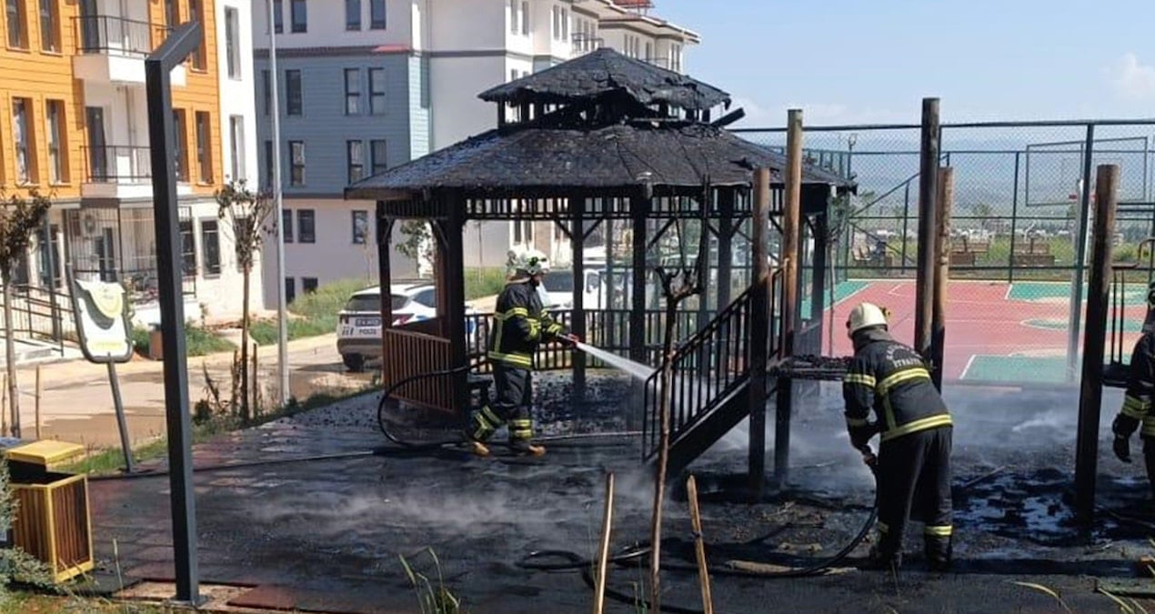 Gaziantep’te çocuk parkındaki oyun grupları alev alarak yanıp, kullanılmaz hale geldi.