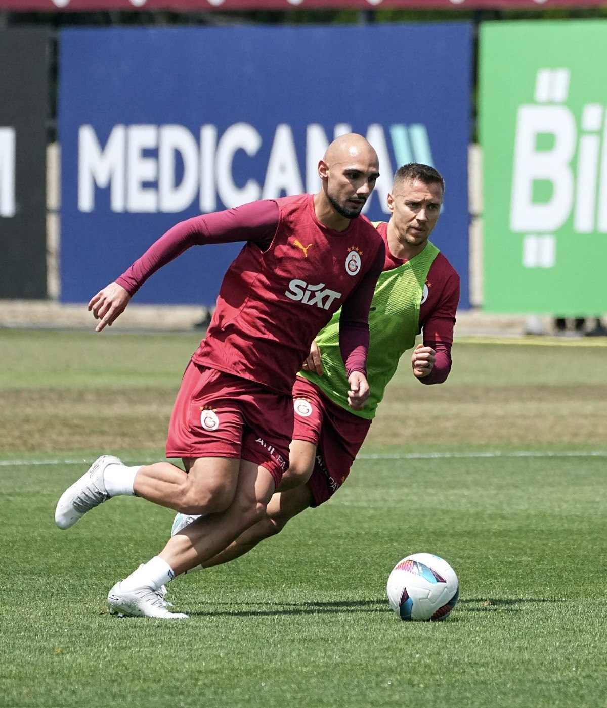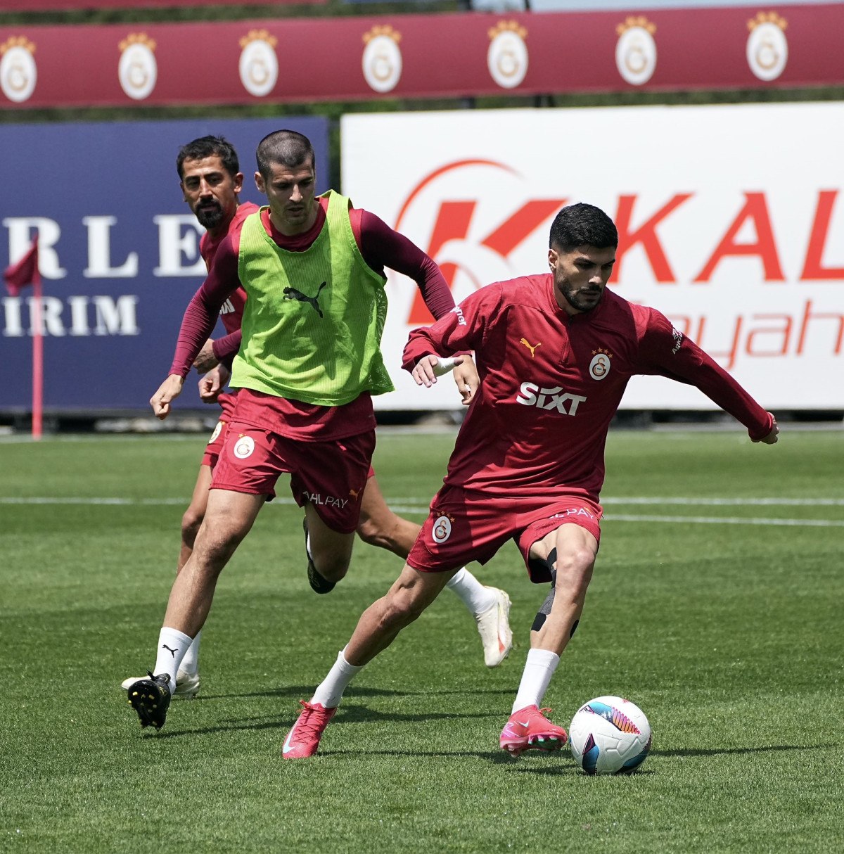 Galatasaray, Kemerburgaz Metin Oktay Tesisleri’nde Teknik Direktör Okan Buruk yönetiminde yapılan antrenman dinamik ısınmayla başladı ve iki grup halinde 6’ya 2 pas çalışmasıyla devam etti.
