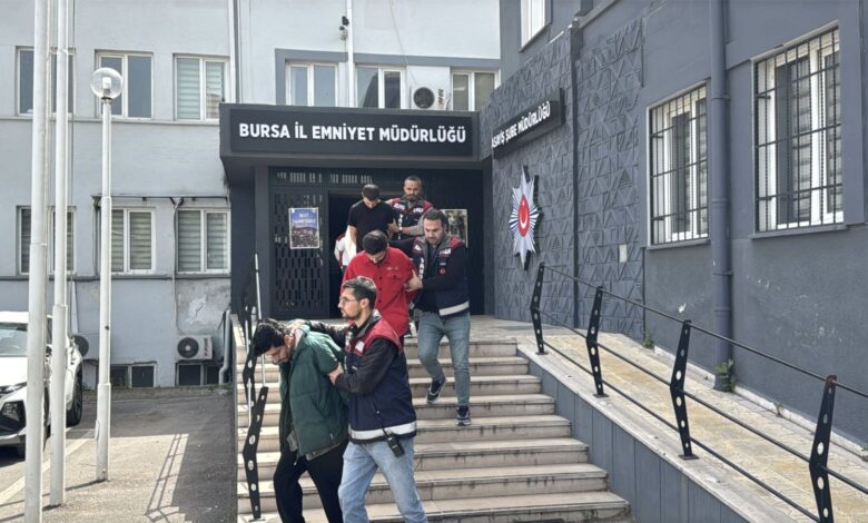 Bursa merkezli İstanbul, Hatay, Gaziantep ve Yalova’daki operasyonda yakalanan şüpheliler emniyetteki işlemlerinin ardından adliyeye sevk edildi.