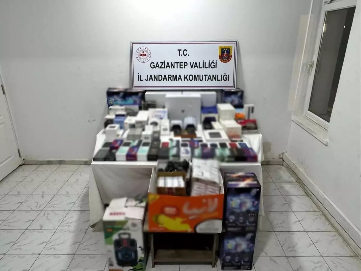 Gaziantep İl Jandarma Komutanlığı ve Cumhuriyet Başsavcılığı iş birliğiyle yapılan operasyonda, Şahinbey ve Şehitkamil ilçelerindeki 3 iş yerine baskın düzenlendi. İş yerlerinde yapılan aramalarda piyasa değeri toplam 2 milyon 280 bin TL olan 54 adet cep telefonu, 53 adet müzik çalar, 38 adet kablosuz kulaklık, 36 adet epilasyon cihazı, 15 adet oyun konsolu, 8 adet akıllı kol saati, 2 adet tablet, 550 adet şarj aleti ve 75 adet cep telefonu güvenlik filigramı ele geçirildi.