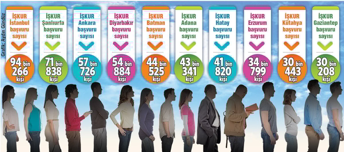 Sağlık Bakanlığı’nın işçi alımına gelen başvuru sayısı adeta Türkiye’de işsizliğin fotoğrafı oldu. Bakanlık 3.170 temizlik görevlisi, 242 klinik destek elemanı, 240 özel güvenlik görevlisi (silahsız), 6 aşçı olmak üzere toplamda 3.658 işçi alımı kadrosu açtığını duyurdu. Sağlık Bakanlığı bir süre önce 81 kentte Türkiye İş Kurumu (İŞKUR) üzerinden işçi alımı yapacağını açıkladı. Bunların 3 bin 170’inin temizlik görevlisi olacağı belirtildi. Başvurular da İŞKUR aracılığıyla yapıldı. Temizlik personeli için en az ilkokul mezunu olma şartı arandı. Temizlik