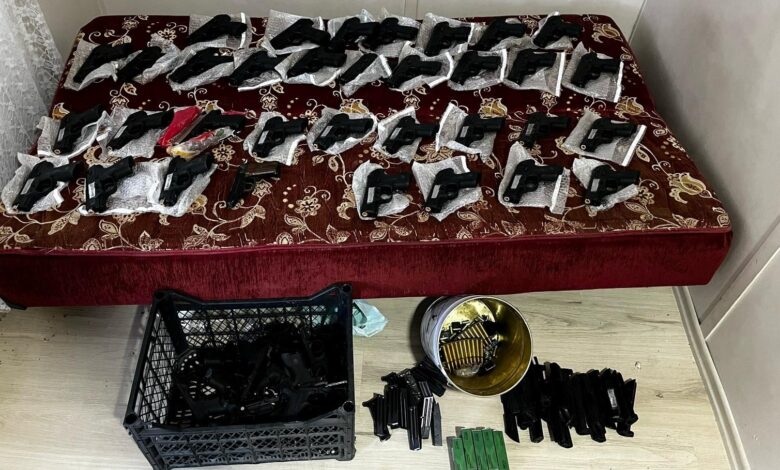 Operasyonda 20 tabanca, 18 kurusıkı tabanca, 1 tüfek, çok sayıda fişek, muhtelif silah parçası ve silah imalatında kullanılan malzemeler ele geçirildi.