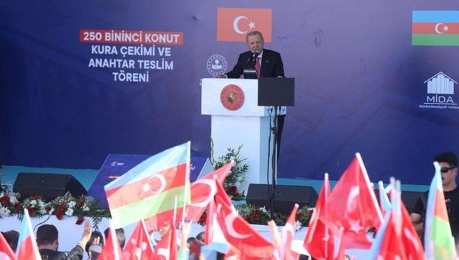 Cumhurbaşkanı Erdoğan’ın açıklamaları şöyle: ‘Bugün burada bir millet iki devlet şiarının somutlaşmasına bir kez daha şahitlik ediyoruz. Biz aynı bayrağın gölgesinde dua eden bir milletin iki devleti tek yürek taşıyan evlatlarıyız. İlham kardeşime ve heyetine teşekkür ediyorum. Türkiye ile Azerbaycan arasındaki kader birliğinin en somut örneklerinden biri açılışını yaptığımız konutlardır. Geçmişten bu güne çok acı hatıralarımız oldu. 11 ilimizde gördüğümüz yıkım hepsinden ayrıldı. 53 bin 735 canımızı toprağa verdik. Yaşadığımız imtihan karşısında bir gün bile ümitsizliğe kapılmadık. Milletimizle gönül gönüle verdik ve kendimizi topladık. Bu zorlu süreçte ülkemizin imdadına ilk koşanlardan biri can Azerbaycan’dı. Felaketin haberini alır almaz ‘Seninleyim Türkiye’m’ diyerek arabasının tavanına varını yoğunu sararak milletimize yardım etmeye çalışan, dualarıyla acımızı paylaşan Azerbaycan halkının dayanışmasını hiçbir zaman unutamayız. Buradaki gibi projelerde geleceğimize güven verecek yeni ortamlar inşa ediyoruz. Sosyal donatı alanları alt yapı projeleriyle yeni yaşam alanları kuruyoruz. Tarihi alanları yeniden ayağa kaldırıyoruz.’ ‘DEPREMİN AÇTIĞI YARALARI SARMA DERDİNDEYİZ’ Biz hükümet olarak asrın felaketinin şehirlerimizde açtığı yaraları sarmanın derdindeyiz. İktidarlığımızın hiçbir döneminde milletimize düş kırıklığı yaşatmadık. Bu anlayışla deprem bölgesini devasa şantiye alanına çevirdik. Felaketin ilk gününden bu yana Avrupa ülkesi büyüklüğündeki bir alanı inşa ettik. 100 binler mimar, mühendis işçi kardeşimiz çalıştı. Muhalefet tamamen kendi iç kavgasıyla meşgulken biz alt yapısı üst yapısıyla tamamladığımız konutları hak sahipleriyle buluşturuyoruz. 2 MİLYON LİRALIK YATIRIM Deprem bölgemizde 2 trilyon lirayı aşan yatırım yaptık. 584 milyar liralık kaynak ayırdık. Yıl sonunda tüm şehirlerimiz yeniden ayağa kaldırmayı hedefliyoruz. Muhalefet anlamasa da yaşadığımız süreç milli mücadeleyle eşdeğerdir. Ne diyorlardı ‘Hükümet bu enkazın altından kalkamaz’. Azimle çalışıyoruz. MUHALEFETE TEPKİ Muhalefet gerçekten acınacak halde. Bizim pusulamız hiçbir zaman muhalefet olmadı. Onlar umutsuzluk yayacak, biz afetzede kardeşimizin kader arkadaşı olacağız. Biz şehirlerimizi daha güçlü bir şekilde ayağa kaldıracağız. Onlar didişirken kavga ederken biz Kahramanmaraş ile birlikte tüm Türkiye’ye aşk ile hizmet edeceğiz.’ ‘AZERBAYCAN MAHALLESİ DOSTLUĞUMUZU GÖSTERİYOR’ Azerbaycan Cumhurbaşkanı İlham Aliyev, Kahramanmaraş’ta yaptığı konuşmada, ‘Size Azerbaycan halkının en samimi selamlarını getirdim.’ dedi. Depremde yaşamını yitirenlere Allah’tan rahmet dileyen Aliyev, ‘Azerbaycan her zaman Türkiye’nin yanında; Türkiye de her zaman Azerbaycan’ın yanında. Azerbaycan Mahallesi bizim dostluğumuz gösteriyor.’ dedi. Azerbaycan’dan gelen ekiplerin deprem zamanı 53 kişiyi enkaz altından sağ kurtardığını anlatan Aliyev, ‘Kurduğumuz iki sahra hastanesinde 3 bin 200 kişiye Azerbaycan doktorları tarafından tıbbi müdahalede bulunmuştu.’ dedi. ‘TÜRKİYE’NİN BİZİMLE OLMASI GÜCÜMÜZE GÜÇ KATTI’ İkinci Karabağ Savaşı’nın başladığı ilk saatlerde Cumhurbaşkanı Recep Tayyip Erdoğan’ın Azerbaycan’a desteğini gösterdiğini anlatan Aliyev, ‘Türkiye halkının bizimle beraber olması bizim gücümüze güç kattı.’ ifadelerini kullandı. Aliyev, ‘Biz iyi günlerde de kötü günlerde de her zaman birbirimizin yanındayız. Bugün Türkiye-Azerbaycan kardeşliği, dünya çapında önemli bir faktördür.’ diye konuştu. BAŞKAN ERDOĞAN PAYLAŞTI: 49 BİN KONUTU TESLİM EDİYORUZ Başkan Erdoğan, bugün gerçekleşecek teslim töreni ile ilgili sosyal medyadan açıklama yaptı. Başkan Erdoğan, açıklamasında ‘Bugün deprem bölgemizde, aralarında Can Azerbaycan’ın desteğiyle hayata geçirilen Azerbaycan Mahallemizdeki konutların da yer aldığı 49 bin 56 iş yeri ve konutu hak sahibi kardeşlerimize teslim ediyoruz. Böylece teslim ettiğimiz toplam konut sayısını 250 bine yükseltiyoruz’ ifadelerini kullandı. Başkan Erdoğan ve Azerbaycan Cumhurbaşkanı Aliyev’in katılacağı ‘250 Bininci Afet Konutu Anahtar Teslimi ve Kura Çekimi Töreni’ Azerbaycan hükümeti ve TOKİ iş birliği ile inşa edilen Azerbaycan Mahallesi’nde düzenlendi. Törende kura çekimiyle yapımı tamamlanan 49 bin 56 bağımsız bölümün hak sahipleri belirlenecek. Gerçekleştirilen tören ile deprem bölgelerinde gerçekleştirilen ayaklandırma çalışmalarında yeni bir noktaya erişilmiş olacak. EN YÜKSEK TESLİM HATAY’DA Tören ile yapılan teslimat sayısına göre en yüksek teslim ise 22 bin 239 ile Hatay’da gerçekleştirilecek. Ardından ise 9 bin 161 teslimat ile Malatya gelecek. Adıyaman’da ise 5 bin 277 bağımsız bölüm teslim edilecek. Törenin yapılacağı Kahramanmaraş’ta 4 bin 311, Diyarbakır’da 2 bin 636 bağımsız bölümün teslimatı gerçekleştirilecek. Elazığ’da ise bin 429, Osmaniye’de bin 336, Şanlıurfa bin 263, Gaziantep 675, Adana 490, Kilis 105, Sivas 85, Kayseri’de 49 bağımsız bölüm teslim edilecek. YILSONUNA KADAR HEDEF 453 BİN 983 İNŞAAT TAMAMLANACAK Asrın felaketinin yaşandığı bölgelerde inşaatlar sürerken, yıl sonuna kadar ise toplamda 453 bin 983 bağımsız bölümün tamamlanması hedef olarak belirlendi. AZERBAYCAN MAHALLESİ YIL SONUNA KADAR TAMAMLANACAK TOKİ ve Azerbaycan hükümeti iş birliğiyle Kahramanmaraş’ta asrın felaketinde ağır yıkım yaşayan Hayrullah Mahallesi’nin bulunduğu bölge yeniden imar edildi. Azerbaycan Mahallesi adı verilen bölgede, bin 183’ü konut, bin 595’i iş yeri olmak üzere toplam 2 bin 