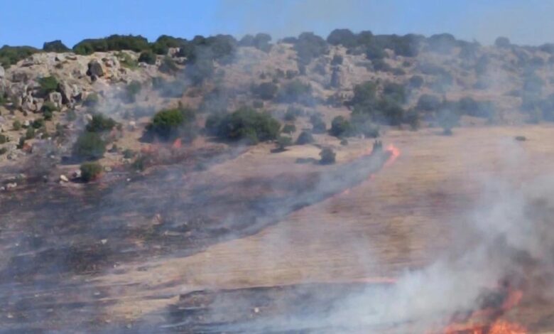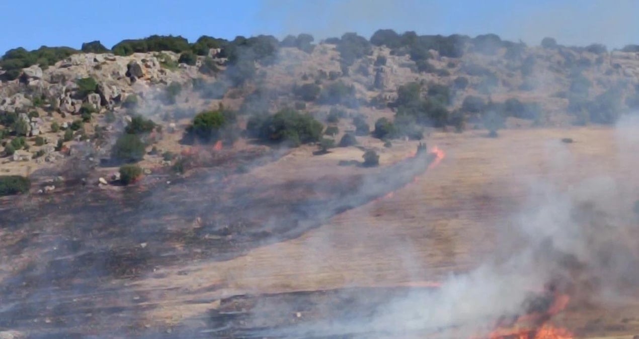 Nurdağı’nda anız yangını otluk ve makilik alana sıçradı