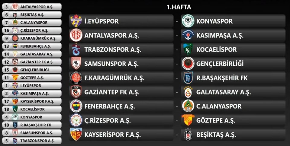 Süper Lig’de yeni sezonun perdesi, 8-9-10 ve 11 Ağustos’ta oynanacak ilk hafta maçlarıyla açılacak.