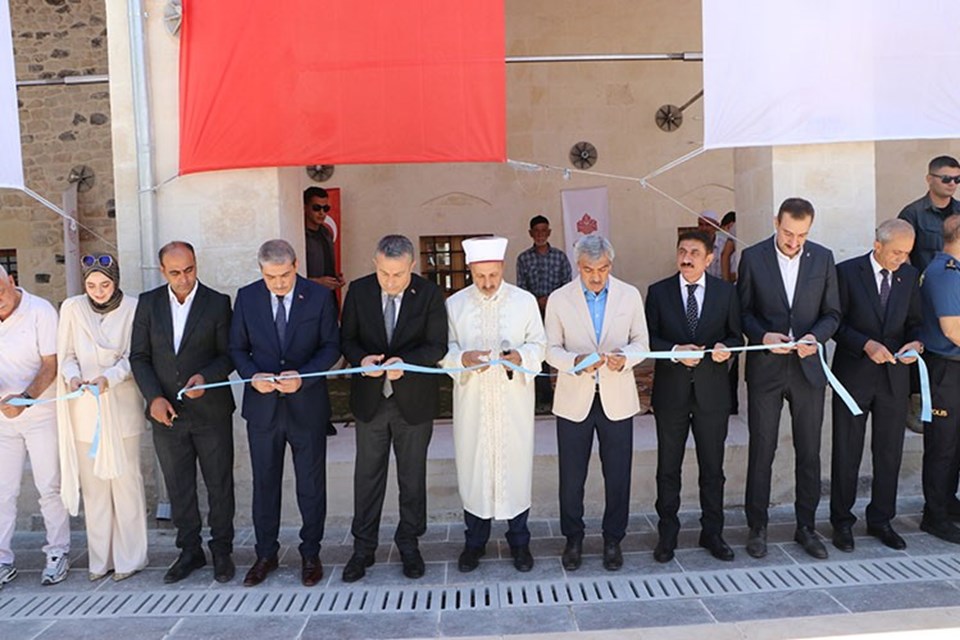 Protokol üyeleri, konuşmaların ardından kurdele keserek caminin açılışını yaptı.
