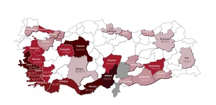 Öte yandan Mersin’de fiyatlar 183 TL’ye çıkarak, lahmacunun en pahalıya satıldığı şehirlerden biri oldu. Lahmacunuyla meşhur Gaziantep’te ise sürpriz bir gelişme yaşandı. Kentte lahmacun fiyatları yüzde 2,8 oranında gerileyerek dikkat çekti.