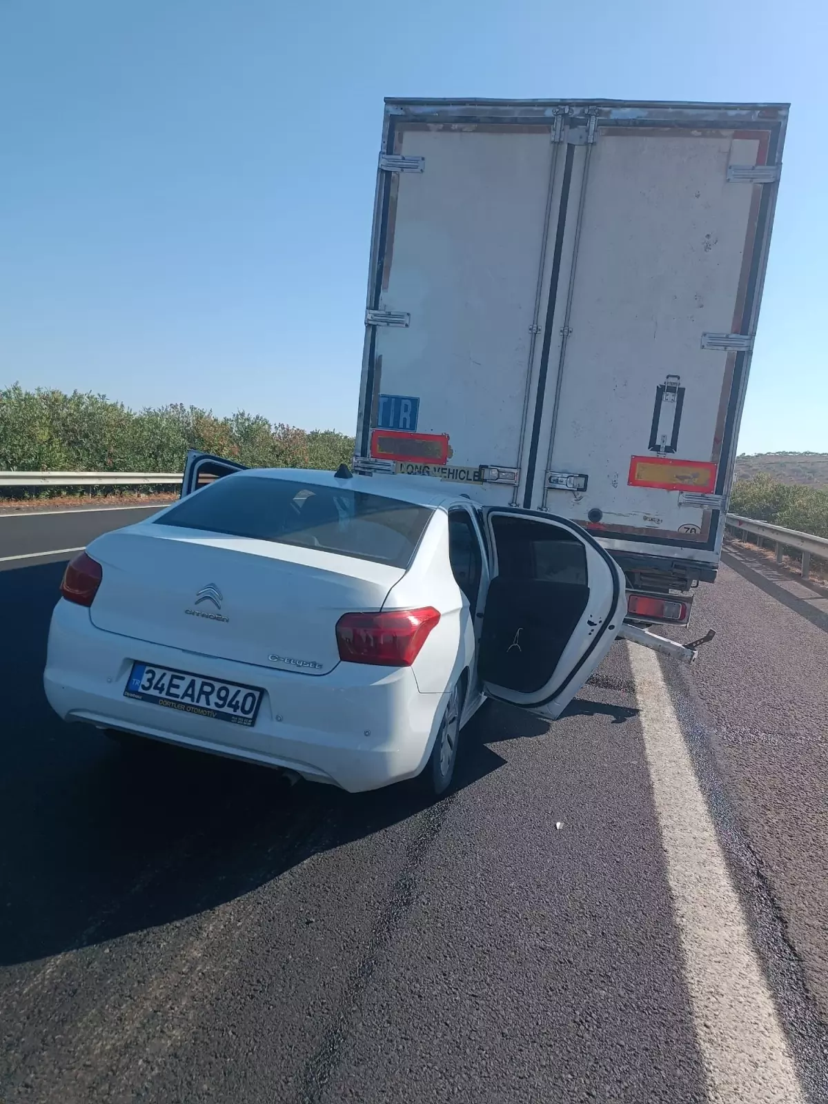 TIR’a çarpan otomobilde acı kaza