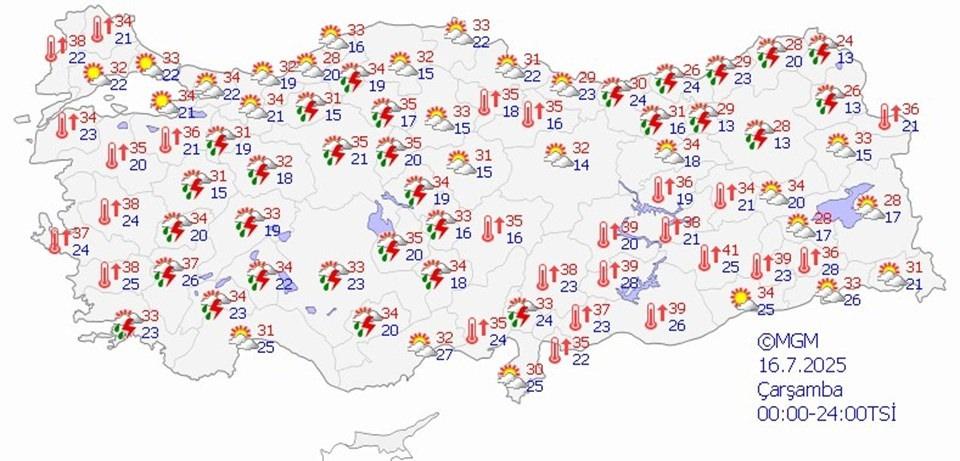 Türkiye’de Meteoroloji Genel Müdürlüğü’nün (MGM) son tahminlerine göre hava sıcaklığı, kuzeybatı kesimlerde mevsim normalleri civarında, diğer bölgelerde ise mevsim normalleri üzerinde seyretmeye devam edecek. Kuzey kesimlerin parçalı, yer yer çok bulutlu, Orta ve Doğu Karadeniz kıyıları ile Artvin çevrelerinin yerel sağanak ve gök gürültülü sağanak yağışlı geçmesi bekleniyor. Diğer yerler ise az bulutlu ve açık olacak. Ayrıca, Marmara’nın güneyi ve Kuzey Ege kıyıları için kuvvetli rüzgar uyarısı yapıldı.