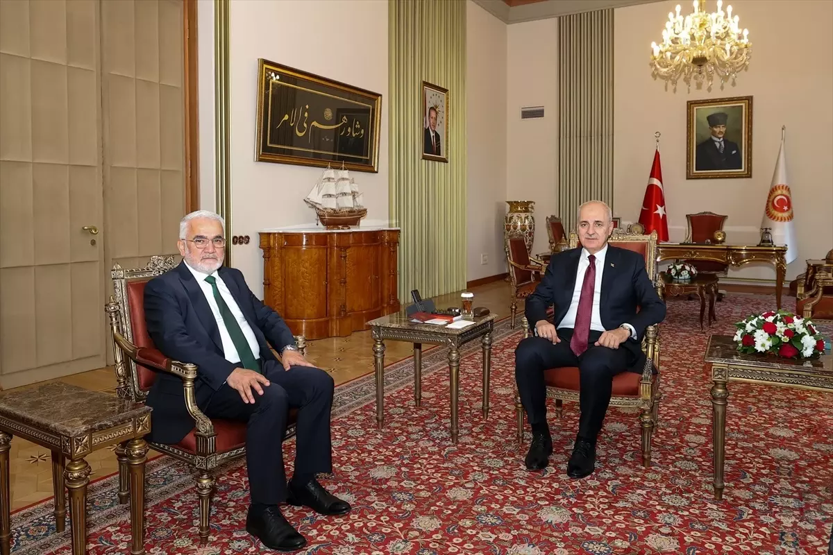 TBMM Başkanı Numan Kurtulmuş, HÜDA PAR Genel Başkanı Zekeriya Yapıcıoğlu ve beraberindeki heyeti kabul etti. TBMM’nin sosyal medya hesabından yapılan açıklamada, Kurtulmuş’un Yapıcıoğlu ile beraberindeki Gaziantep Milletvekili Şahzade Demir ve Mersin Milletvekili Faruk Dinç‘i kabul ettiği belirtildi. Görüşme, basına kapalı gerçekleşti.
