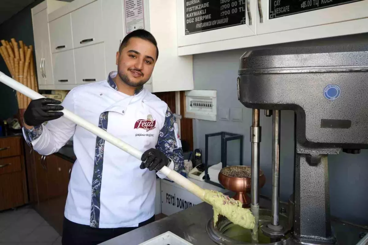 Gaziantep’in eşsiz ve tescilli lezzeti olan Antep fıstıklı dondurma, yaz aylarında özellikle yoğun bir ilgi ile karşılaşıyor. Genç dondurmacı Deniz Doğan, hem geçmişten gelen bu köklü geleneği yaşatmakta hem de gelecek nesillere bu lezzeti aktarmak için çaba sarf etmekte. Baba mesleğini sürdüren Doğan, 8 yıldır bu sektörde yer aldığını ve markayı daha ileriye taşımak için çalıştığını belirtiyor. Antep fıstıklı dondurma, Gaziantep’in simgelerinden biri haline gelmiş ve bu geleneğin merkezinde yer alıyor.
