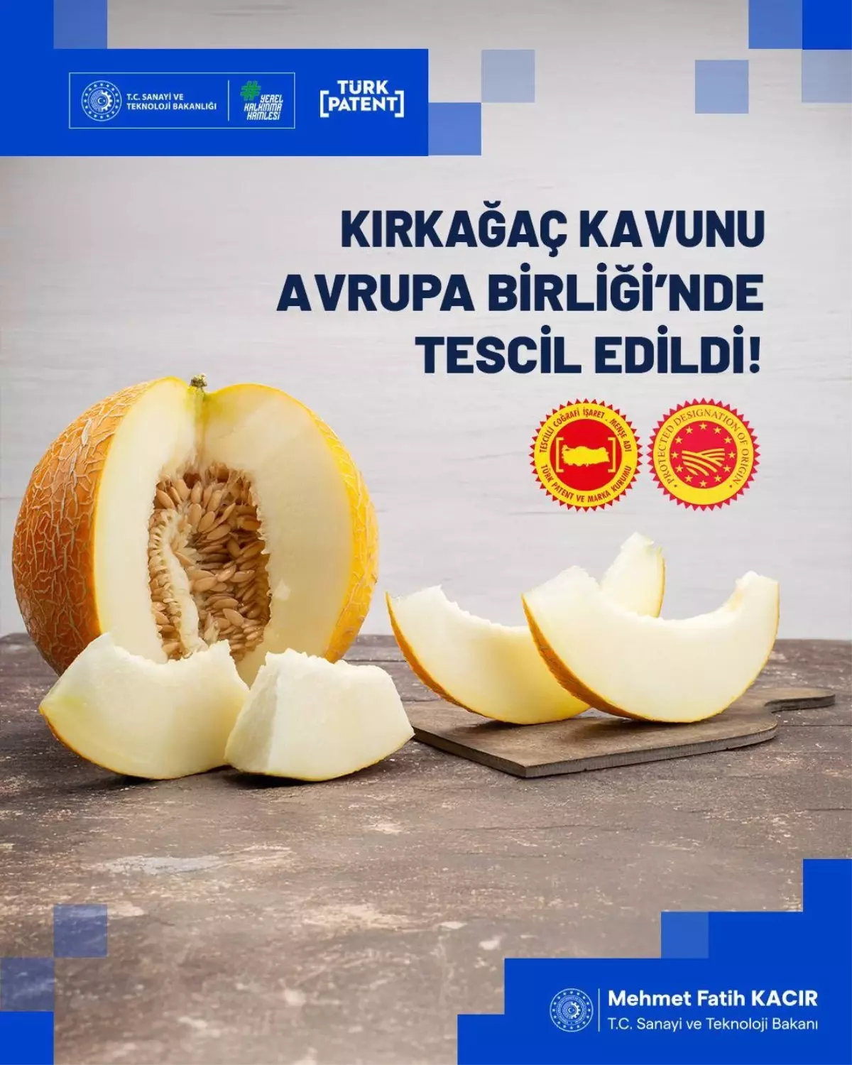 SANAYİ ve Teknoloji Bakanı Mehmet Fatih Kacır, Anadolu’nun zengin topraklarında yetişen Mut zeytinyağı ve Kırkağaç kavununun, Avrupa Birliği’nde (AB) tescil edildiğini açıkladı. Bakan Mehmet Fatih Kacır, sosyal medya hesabından yaptığı açıklamada, “Yürüttüğümüz yerel kalkınma hamlesinin önemli bir unsuru da coğrafi işaretli ürünlerimizdir. Mut zeytinyağı ve Kırkağaç kavunu, Avrupa Birliği’nde tescil edilen 37’nci ve 38’inci coğrafi işaretli ürünlerimiz oldu. Anadolu’nun bereketi, eşsiz lezzetlerimiz artık Avrupa’da resmen tescillidir. Bu başarı; üreticimizin emeği, toprağımızın kıymeti ve medeniyetimizin mirasıdır. Coğrafi işaretli ürünlerimizi küresel ölçekte markalaştırmaya kararlılıkla devam edeceğiz” dedi.