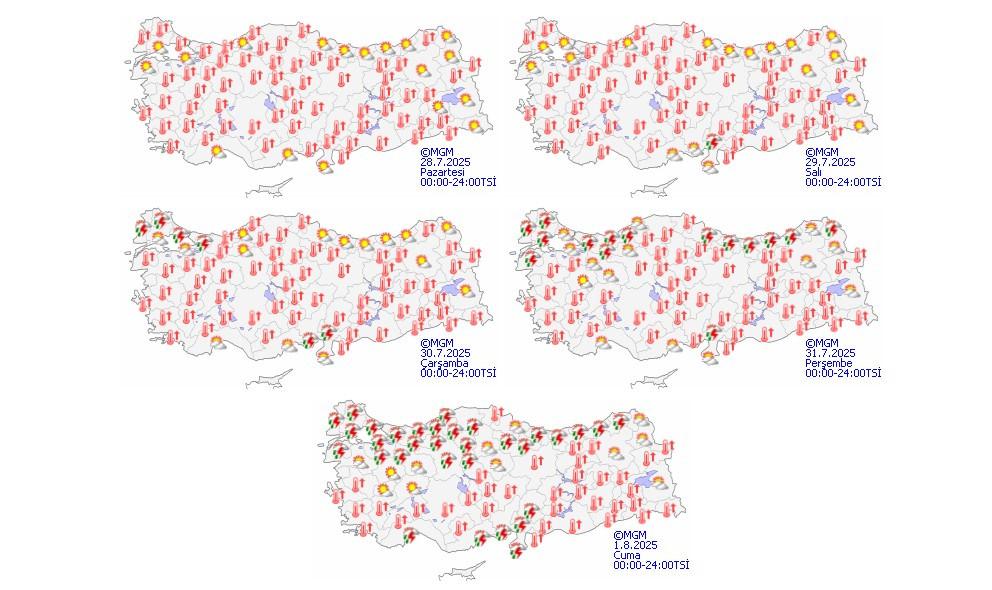 Özellikle Pazartesi ve Salı günleri iç, güney ve batı bölgelerde sıcaklık rekorlarının kırılması bekleniyor.