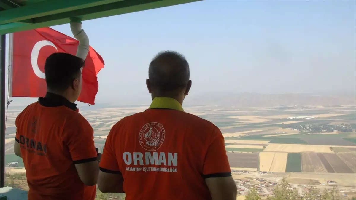 Gaziantep’in Nurdağı ilçesindeki 800 rakımlı Emirtepe Yangın Gözetleme Kulesi’nde görevli orman bekçileri, 24 saat esasına göre nöbet tutuyor. Kahramanmaraş Orman Bölge Müdürlüğüne bağlı Nurdağı İşletme Şefliğine ait Emirtepe Yangın Gözetleme Kulesi’nde görevli personel, olası yangın risklerine karşı gece gündüz nöbet tutuyor. Kule görevlilerinin yönlendirmesiyle arazözler ve hava araçları, yangınları büyümeden kontrol altına almak için hızla müdahalede bulunuyor.