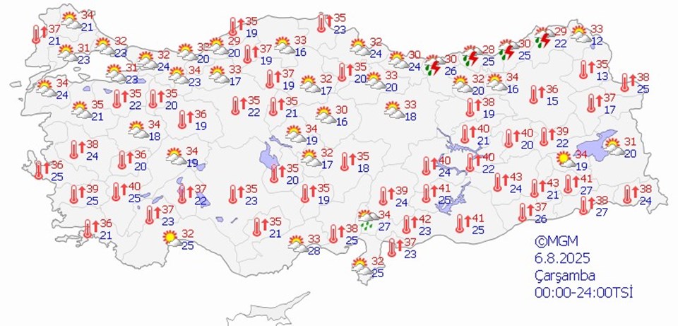 Yeni haftada ise çarşamba gününden itibaren sıcaklıklar yurt genelinde artacak. Diyarbakır ve Siirt’te hava sıcaklığının 43 dereceleri bulması bekleniyor. İç ve batı kesimler ise 36-38 derece civarında olacak.