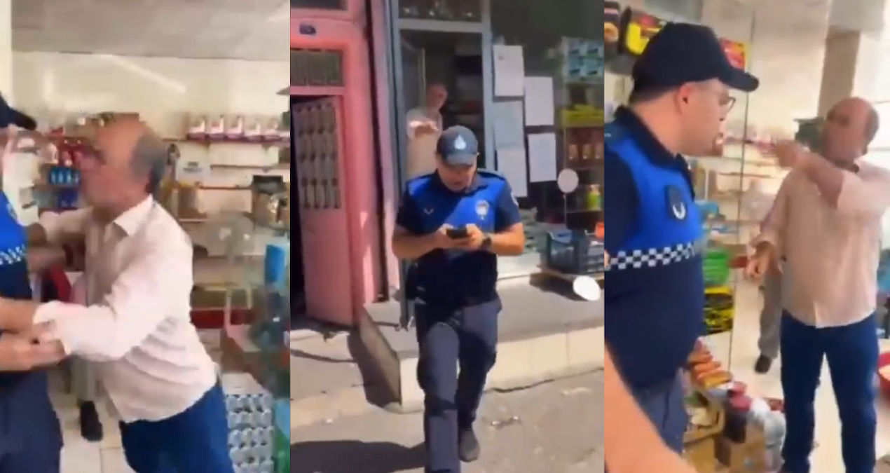 Sosyal medyada paylaşılan görüntülerde, daha önceden tarihi geçmiş ürün sattığı gerekçesiyle hakkında işlem yapılan bir işletmenin, yeniden denetime gelen zabıta ekiplerini ölümle tehdit ettiği anlara yer verildi.