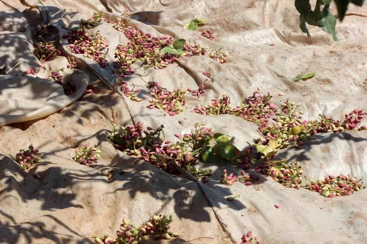 Çiftçiler, sabah erken saatlerden itibaren 40 derece sıcaklıkta fıstık bahçelerine giderek fıstık toplamaktadır. Üretim süreci zahmetli olmasına rağmen fıstığın ekonomik değeri çiftçilerin motivasyonunu artırmaktadır. Fıstık hasadı için önce “boz” fıstık toplanmakta, ardından “kırmızı ben” hasadı yapılmaktadır. Bu yıl rekolte düşük olduğu için çiftçiler genellikle boz fıstığı zamanında toplamaktadır.