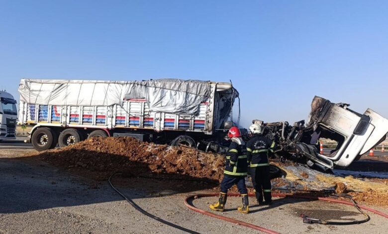 Gaziantep’te Arpa Yüklü Tırın Çekici Kısmında Yangın: Sürücü Hastaneye Kaldırıldı