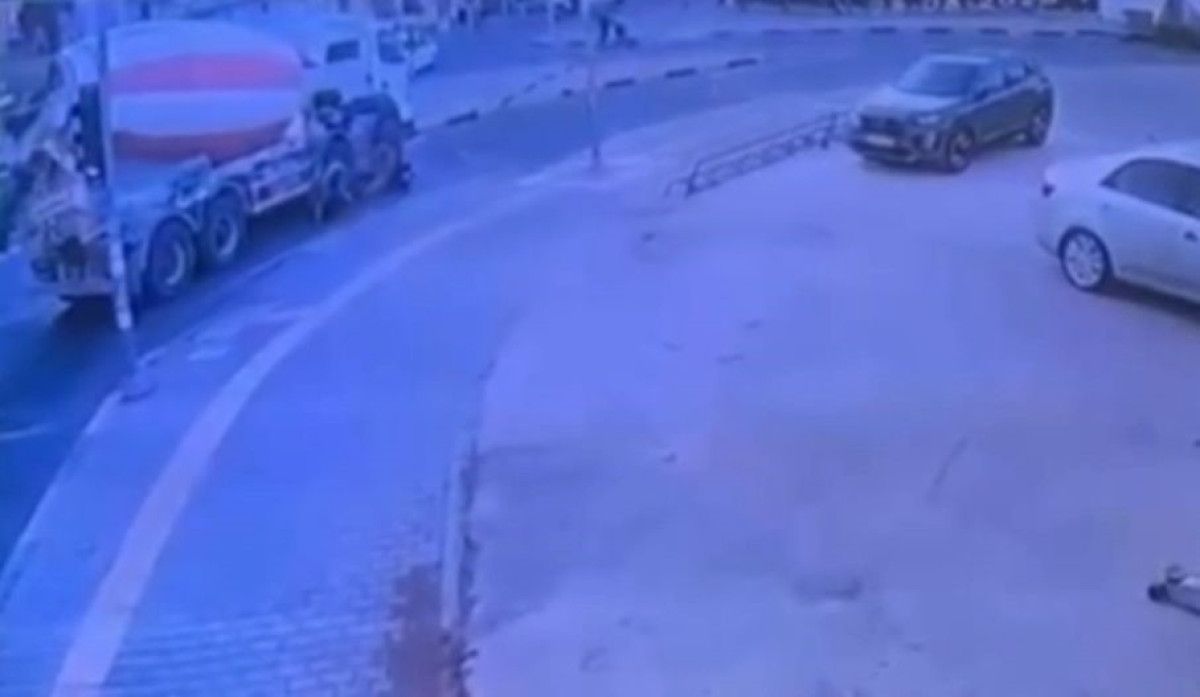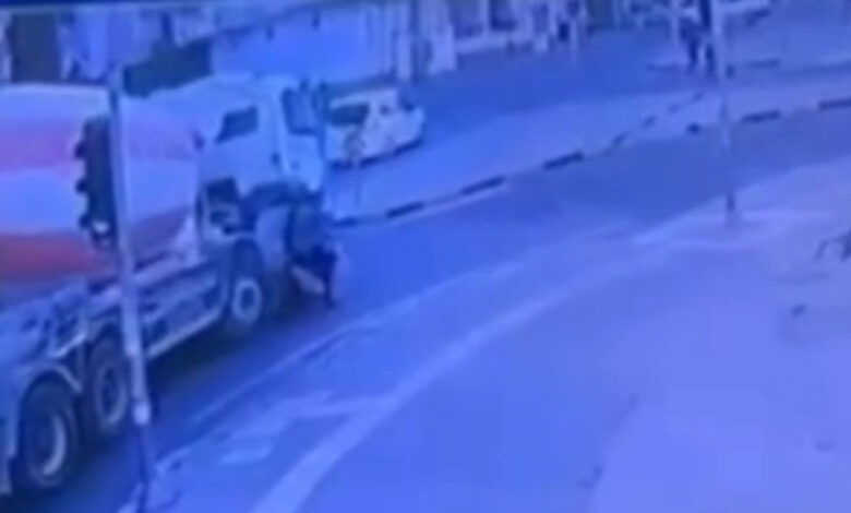 Yaşanan olay, bir iş yerinin güvenlik kamerası tarafından kaydedildi. Görüntülerde, motosiklet sürücüsünün kendisini son anda atması ve hemen ardından beton mikserinin durduğu anlar açıkça görülüyor.