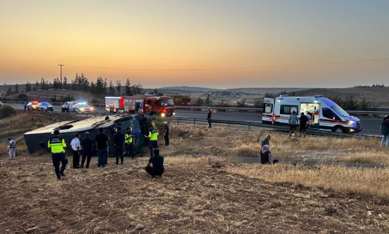 Şanlıurfa Otoyolunda Sabahın İlk Saatlerinde Yolcu Otobüsü Devrildi