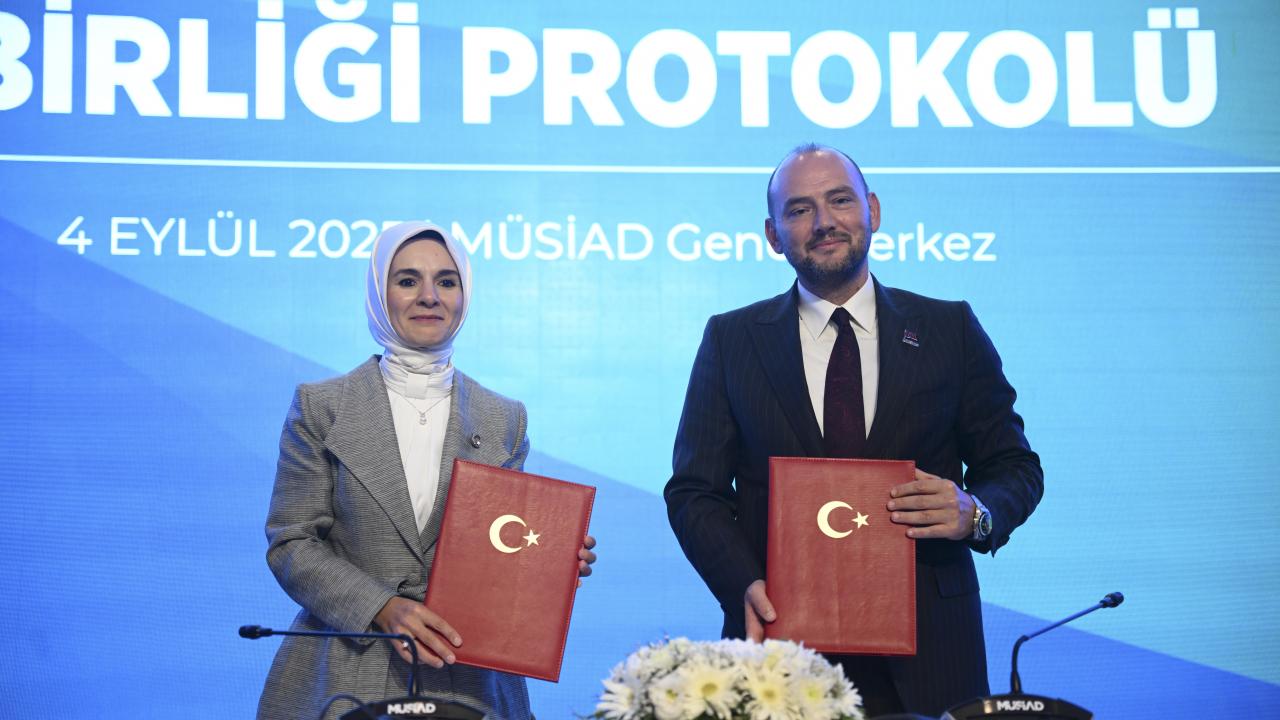 MÜSİAD’ın Bakırköy genel merkezinde düzenlenen imza törenine Aile ve Sosyal Hizmetler Bakanı Mahinur Özdemir Göktaş, MÜSİAD Genel Başkanı Burhan Özdemir ve dernek üyeleri katıldı. Bakan Göktaş, aile dostu politikalarla Türkiye’nin geleceğine yatırım yaptıklarını, 2025’in ‘Aile Yılı’ olarak ilan edilmesiyle aileyi güçlendirecek çalışmaların hayata geçirildiğini ifade etti.
