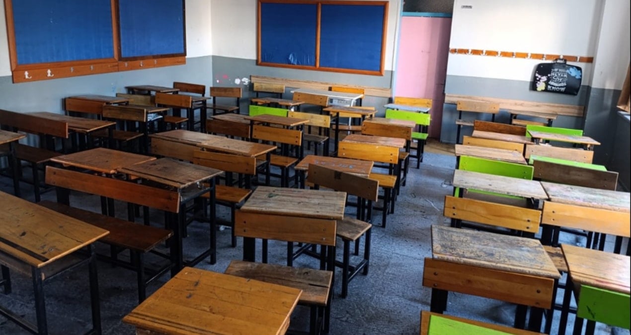 Sendika Başkanı Kadem Özbay, kendi çocuğunun devam ettiği okulun dolu olmayan sınıfının fotoğrafını paylaşmış ve öğrencilerin yüzlerinin görünmesini istememiştir.