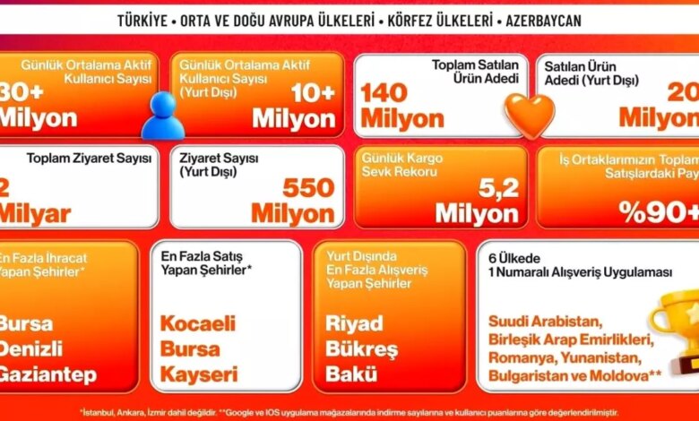 Açıklanan verilere göre Kasım ayında Trendyol’a toplamda 2 milyardan fazla ziyaret gerçekleşti. Bu ziyaretlerin 550 milyondan fazlası yurt dışından gelirken, satıcılar toplamda 140 milyon ürün satışı gerçekleştirdi. Günlük ortalama aktif kullanıcı sayısı da 30 milyonu geçerek platformun geniş kullanıcı tabanını ortaya koydu.