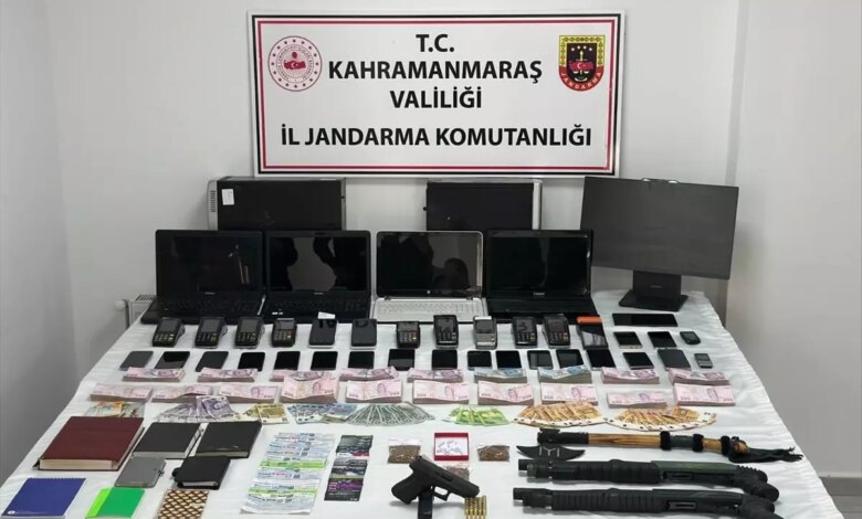 Kahramanmaraş’ın Pazarcık ilçesi ile Gaziantep’teki belirlenen adreslere yapılan baskınlarda 17 şüpheli gözaltına alındı. Operasyonda şüphelilerin ev ve araçlarında yapılan aramalarda; 21 cep telefonu, 12 pos cihazı, 29 kredi kartı, 13 senet, 18 çek, 9 alacak-verecek defteri, 4 dizüstü bilgisayar, 2 bilgisayar kasası, 12 flaş bellek, bir tablet, 1 ruhsatsız tabanca, 2 pompalı tüfek, bir miktar uyuşturucu madde ve nakit para ele geçirildi.
