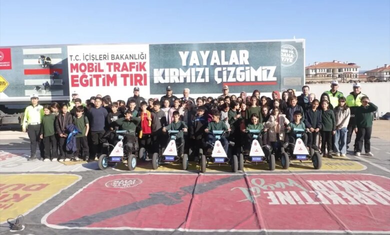 Tır içinde trafik polisi tarafından öğrencilere teorik trafik bilgileri aktarılırken, daha sonra öğrenciler açık alana çıkarak trafik kurallarını uygulamalı olarak öğrendi. Bu etkinlik, öğrencilere trafikte farkındalık kazandırmayı hedefliyor.
