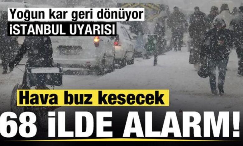 Meteoroloji Genel Müdürlüğü, 68 il için kuvvetli yağış, fırtına ve soğuk hava uyarısında bulundu. Özellikle akşam saatlerinde sıcaklıkların 6-7 derece birden düşmesiyle birlikte kar yağışı etkili olacak. Pazartesi gününden itibaren Trakya, İstanbul ve birçok bölgede kar görülmesi bekleniyor.